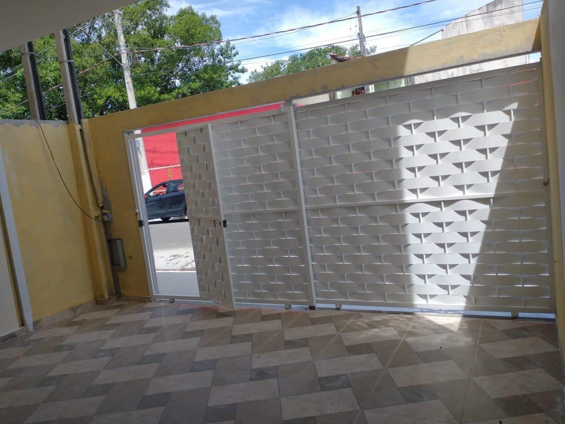 Em baixo: 1 sala, 1 cozinha, 1 lavabo, área de serviço, garagem 2 carros sem cobertura